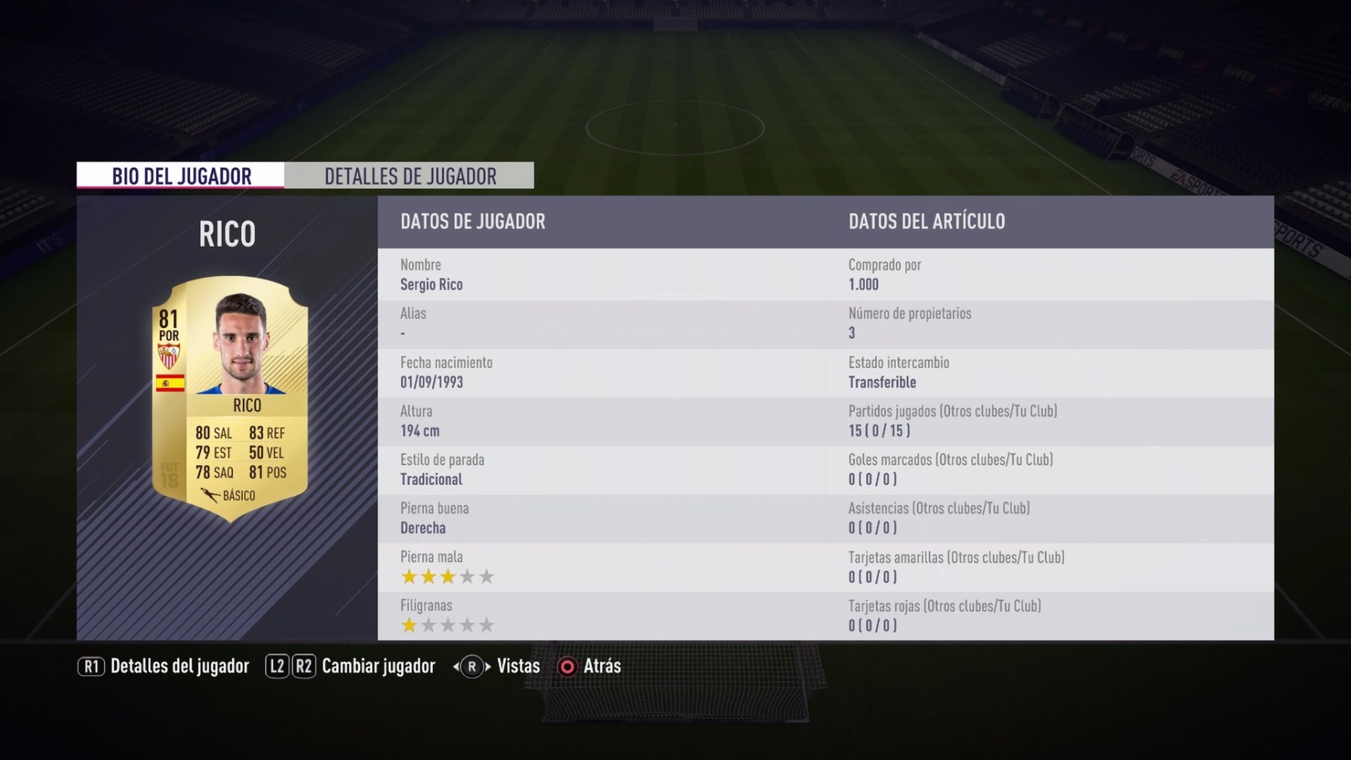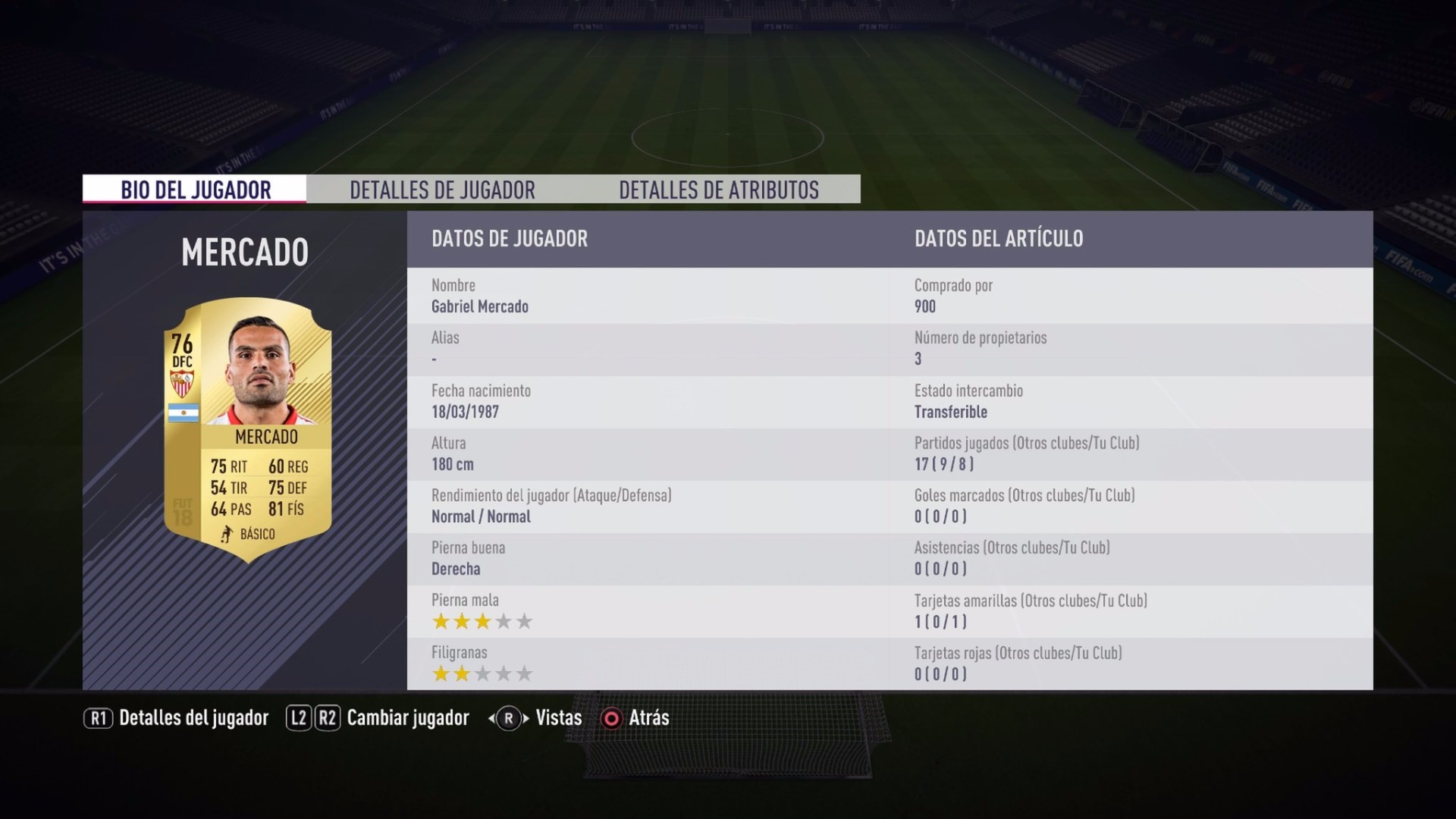 Prodigiosa, no hay otra palabra para definir las actuaciones de Mercado en defensa. Es la combinación perfecta entre ritmo, físico y defensa; pese a lo que puedan aparentar sus stats. Y aunque posee un pase únicamente 64 puntos de pase saca el balón de forma bastante limpia. En definitiva, un gran central por menos de 1.000 monedas.