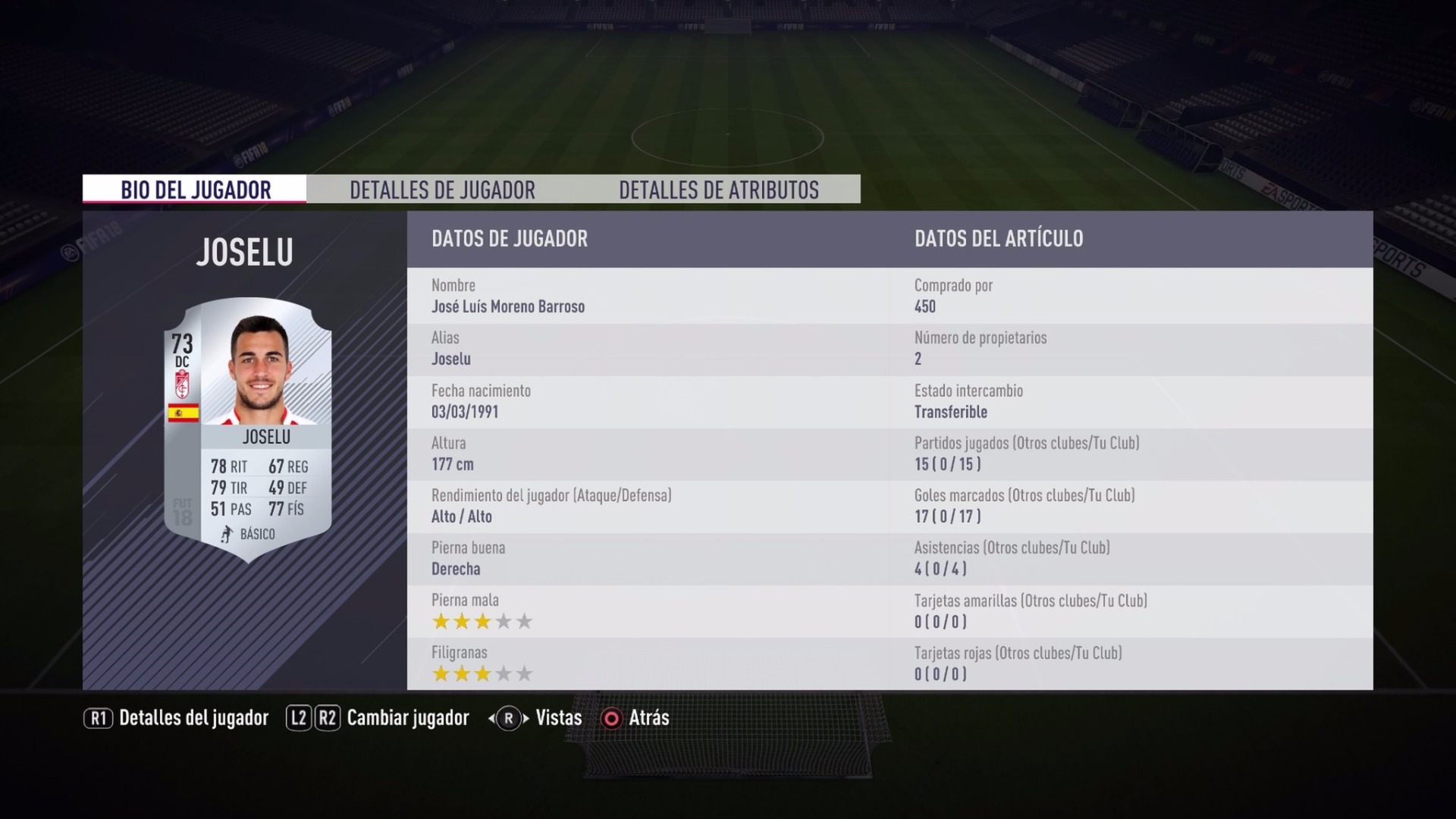 Es posible que a muchos os extrañe encontraros con una carta de plata, pero si analizamos un poco sus estadísticas veremos que posee mayor definición (83) que jugadores como Zaza o Morata. Si a eso le sumas un ritmo bastante decente se convierte en una gran opción para tu delantera por 450 monedas. A eso se le tiene que sumar su escandaloso remate de cabeza, porque pese a medir 177 cm y no tener grandes stats de salto y cabezazo; muchos de sus goles los marca por arriba.